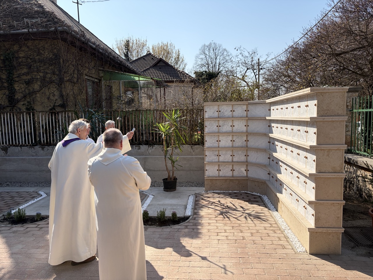 A Csillaghegyi Jézus Szíve Plébánia urnatemetőjének bővítésére az Esztergom- Budapesti Főegyházmegye erkölcsi és anyagi hozzájárulásával 2026-ban sor kerülhetett. A bővítés tervét Antal- Bartalis Laura készítette, a kivitelezés a Via-Domus kft. és a Walter Bt. összehangolt munkája volt. Az első ütemben elkészült urnahelyeket 2026. március 22.-én a 9 órai szentmise után dr. Temesszentandrási Péter plébános áldotta meg. Az urnahelyek megváltására 20026. március 31. után nyílik lehetőség. |